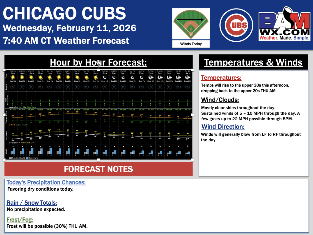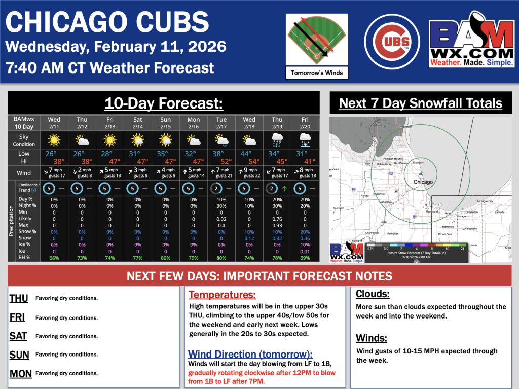2-11-26 Chicago Cubs Forecast Update.H. By Hope KleitschOn February 11, 2026 Good morning! Here is your latest Chicago Cubs forecast update. Please reach out with any questions! PDF: Chicago Cubs