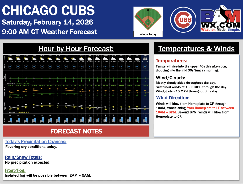 2-14-26 Chicago Cubs Forecast Update.JW. By Jakeb WagnerOn February 14, 2026 Good morning! Here is your latest Chicago Cubs forecast update. Please reach out with any questions! PDF: Chicago Cubs