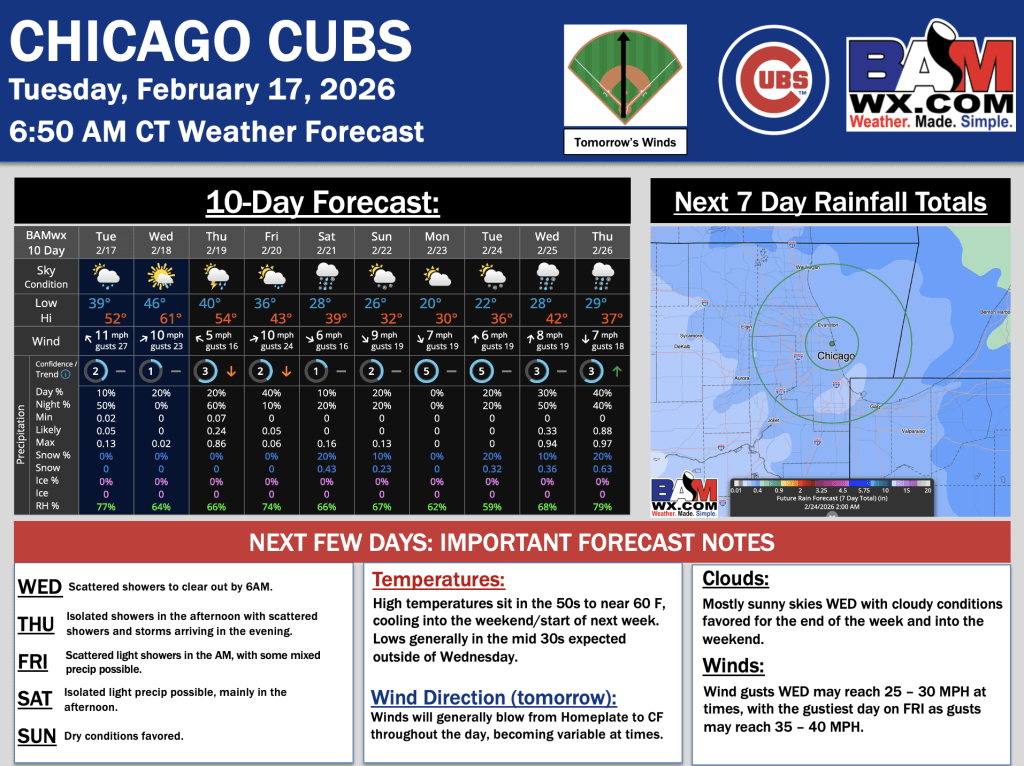 2-17-26 Chicago Cubs Forecast Update.H. By Hope KleitschOn February 17, 2026 Good morning! Here is your latest Chicago Cubs forecast update. Please reach out with any questions! PDF: Chicago Cubs