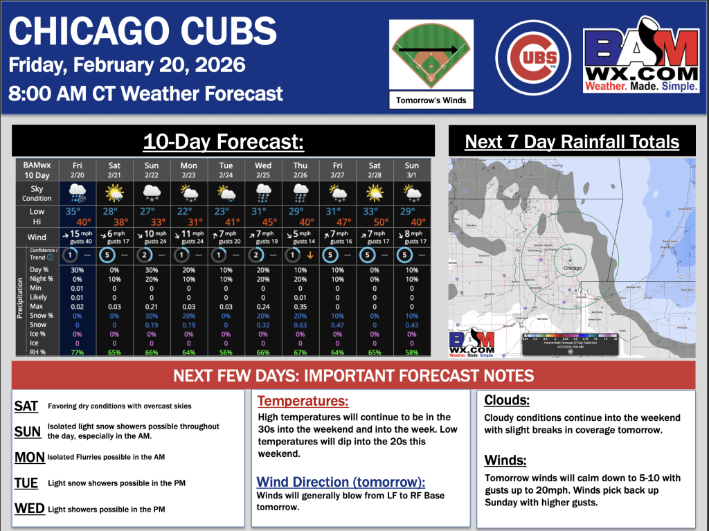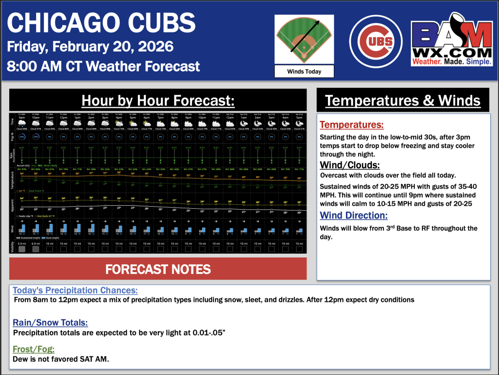2-20-26 Chicago Cubs Forecast Update.D. By Daniel MurphyOn February 20, 2026 Good Morning! Here is your latest Chicago Cubs forecast update. Please reach out with any questions! PDF: Chicago Cubs