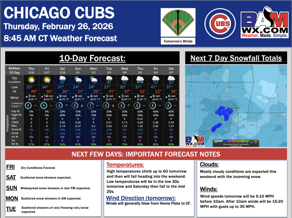 2-26-26 Chicago Cubs Forecast Update.D. By Daniel MurphyOn February 26, 2026 Good Morning! Here is your latest Chicago Cubs forecast update. Please reach out with any questions! PDF: Chicago Cubs