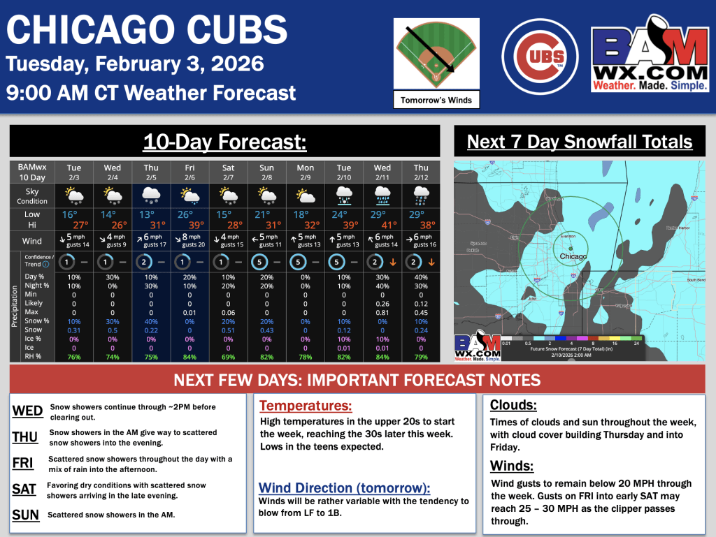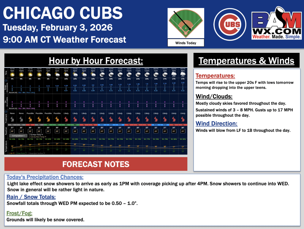 2-3-26 Chicago Cubs Forecast Update.H. By Hope KleitschOn February 3, 2026 Good morning! Here is your latest Chicago Cubs forecast update. Please reach out with any questions! PDF: Chicago Cubs