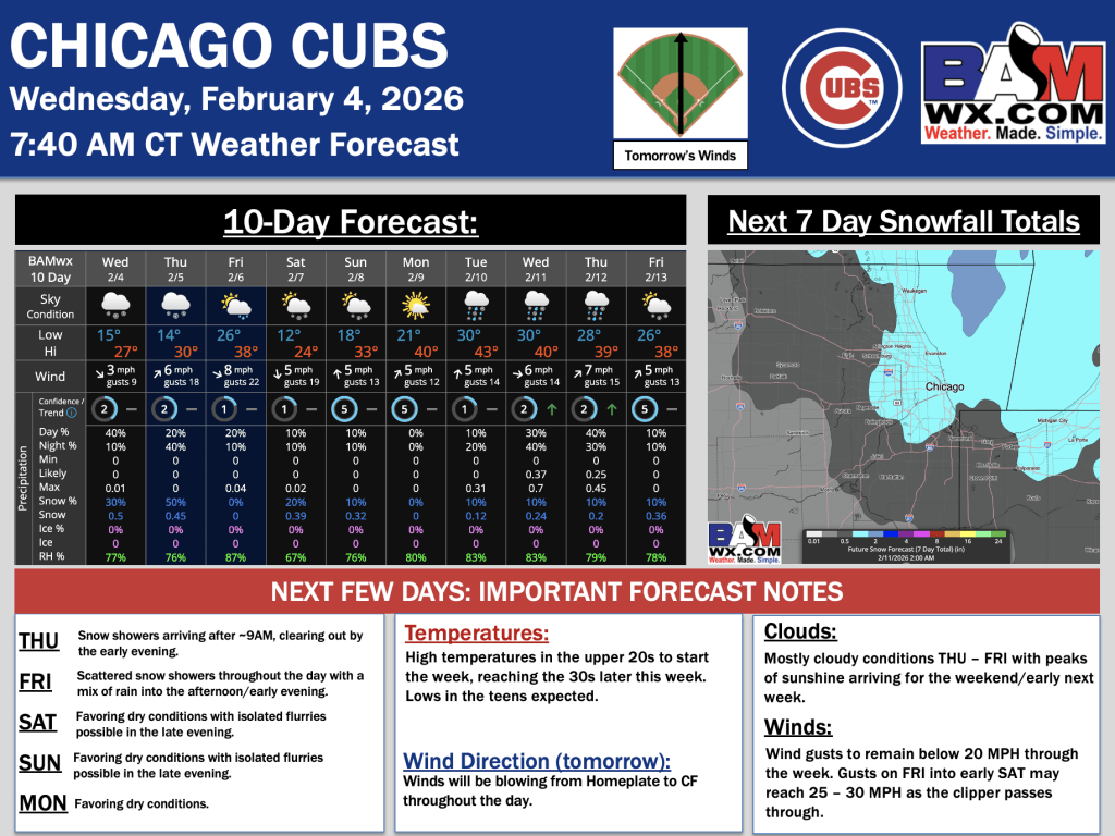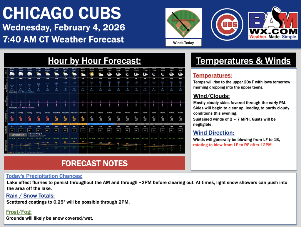 2-4-26 Chicago Cubs Forecast Update.H. By Hope KleitschOn February 4, 2026 Good morning! Here is your latest Chicago Cubs forecast update. Please reach out with any questions! PDF: Chicago Cubs