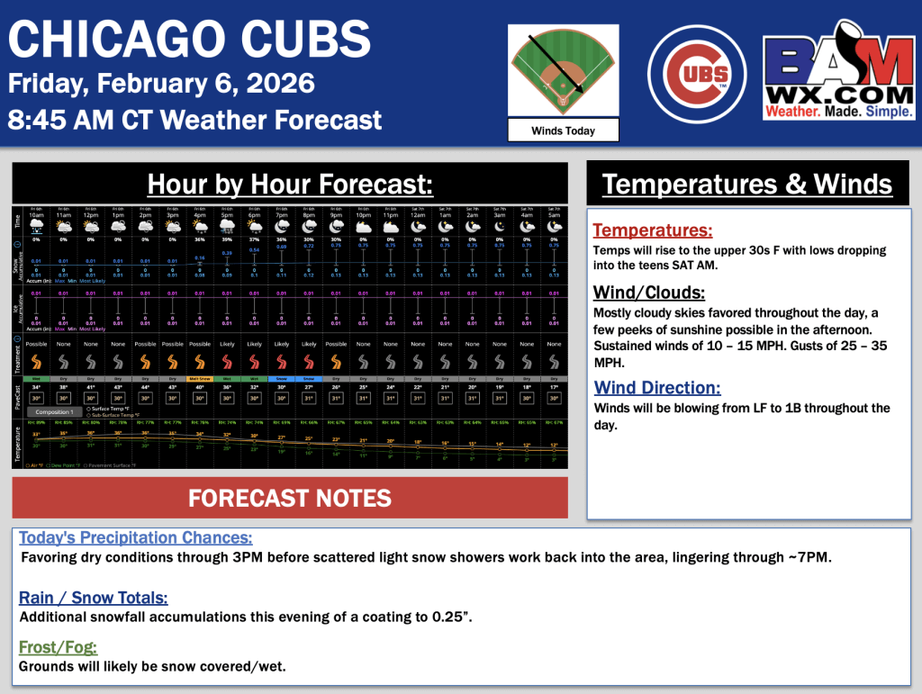 2-6-26 Chicago Cubs Forecast Update.H. By Hope KleitschOn February 6, 2026 Good morning! Here is your latest Chicago Cubs forecast update. Please reach out with any questions! PDF: Chicago Cubs