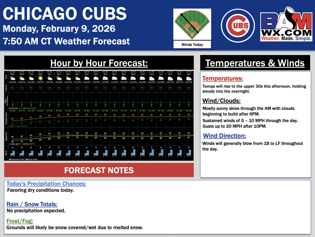 2-9-26 Chicago Cubs Forecast Update.H. By Hope KleitschOn February 9, 2026 Good morning! Here is your latest Chicago Cubs forecast update. Please reach out with any questions! PDF: Chicago Cubs