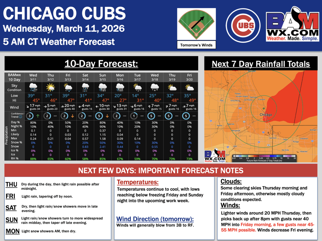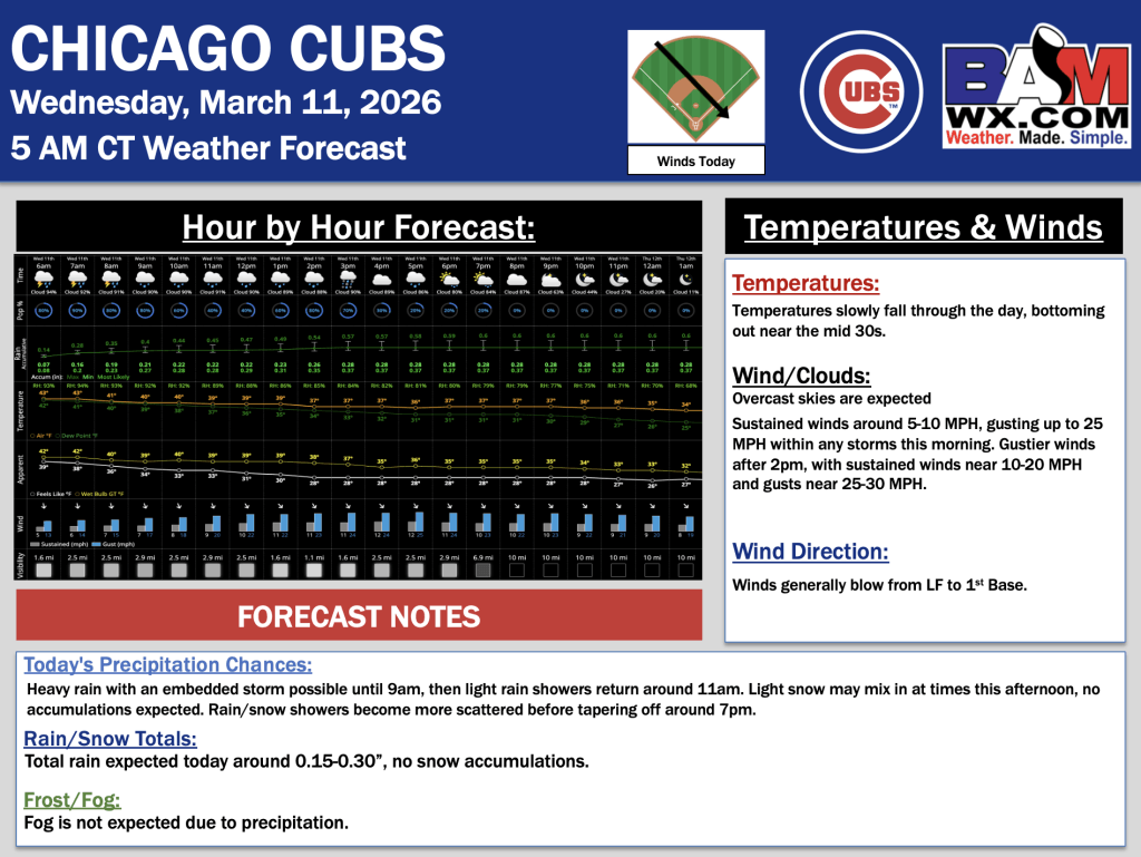 3-11-26 Chicago Cubs.A. By Alexis RatkayOn March 11, 2026 Good morning! Here is your latest Chicago Cubs Forecast Update. PDF: Chicago Cubs