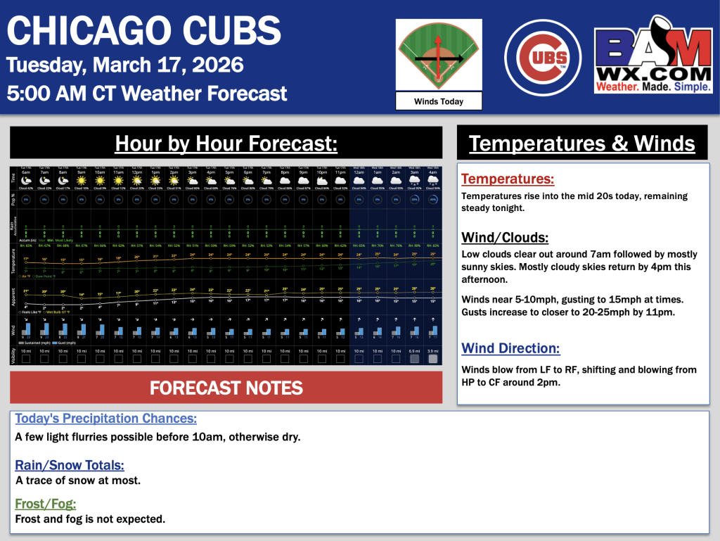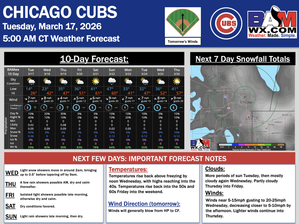 3-17-26 Chicago Cubs.A. By Alexis RatkayOn March 17, 2026 Good morning! Here is your latest Chicago Cubs Forecast Update. PDF: Chicago Cubs