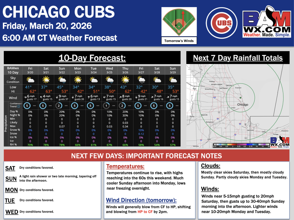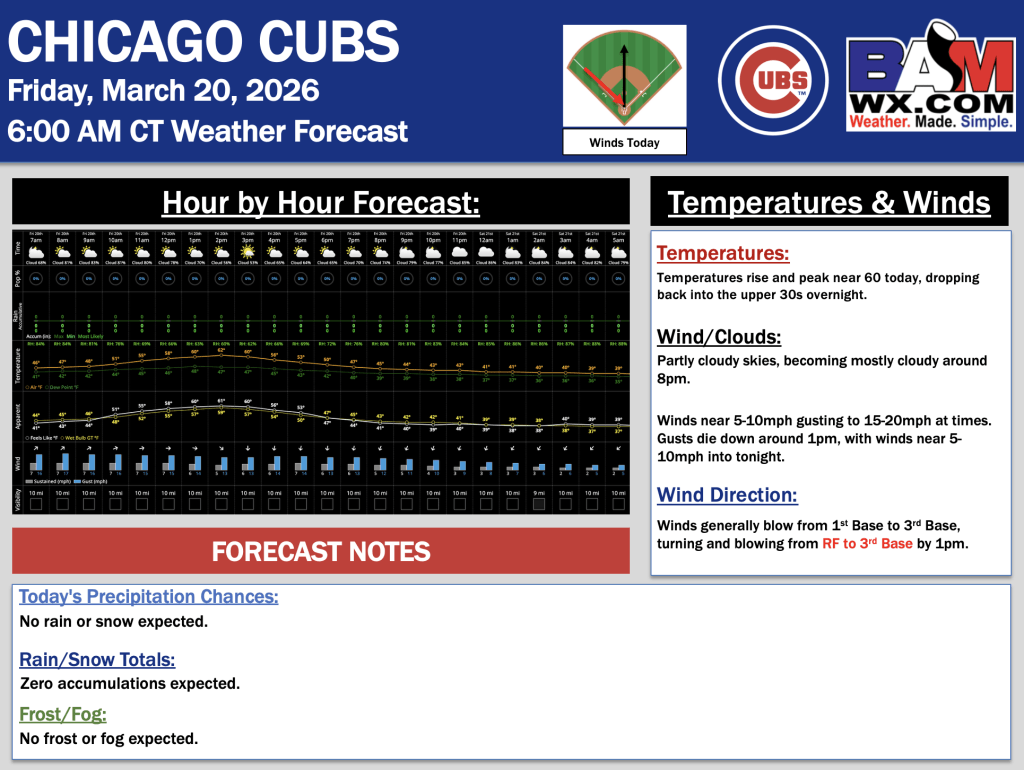 3-20-26 Chicago Cubs.A. By Alexis RatkayOn March 20, 2026 Good morning! Here is your latest Chicago Cubs Forecast Update. PDF: Chicago Cubs
