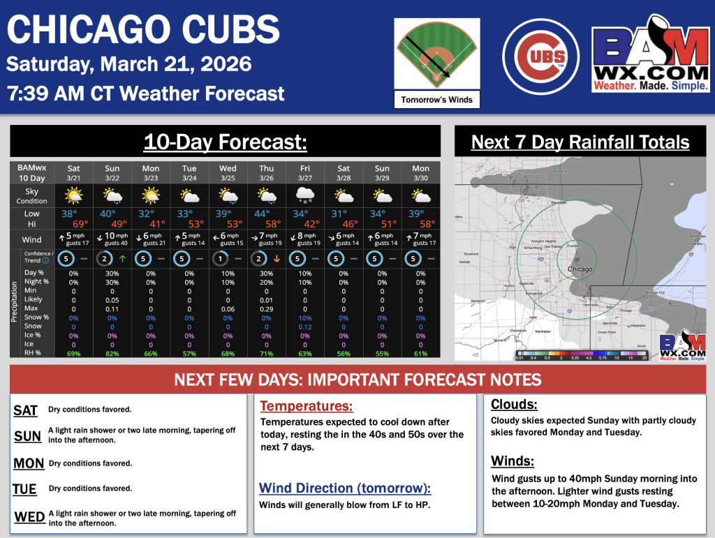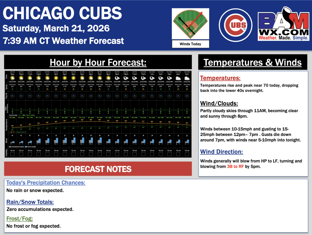 3-21-26 Chicago Cubs.JW. By Jakeb WagnerOn March 21, 2026 Good morning! Here is your latest Chicago Cubs Forecast Update. PDF: Chicago Cubs