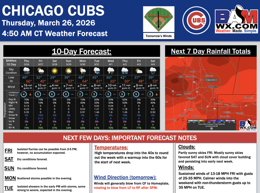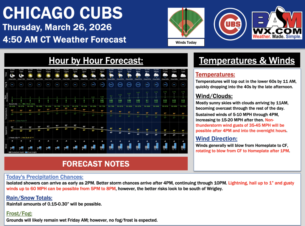3-26-26 Chicago Cubs Forecast Update.H. By Hope KleitschOn March 26, 2026 Good morning! Here is your latest Chicago Cubs forecast update. Please reach out with any questions! PDF: Chicago Cubs