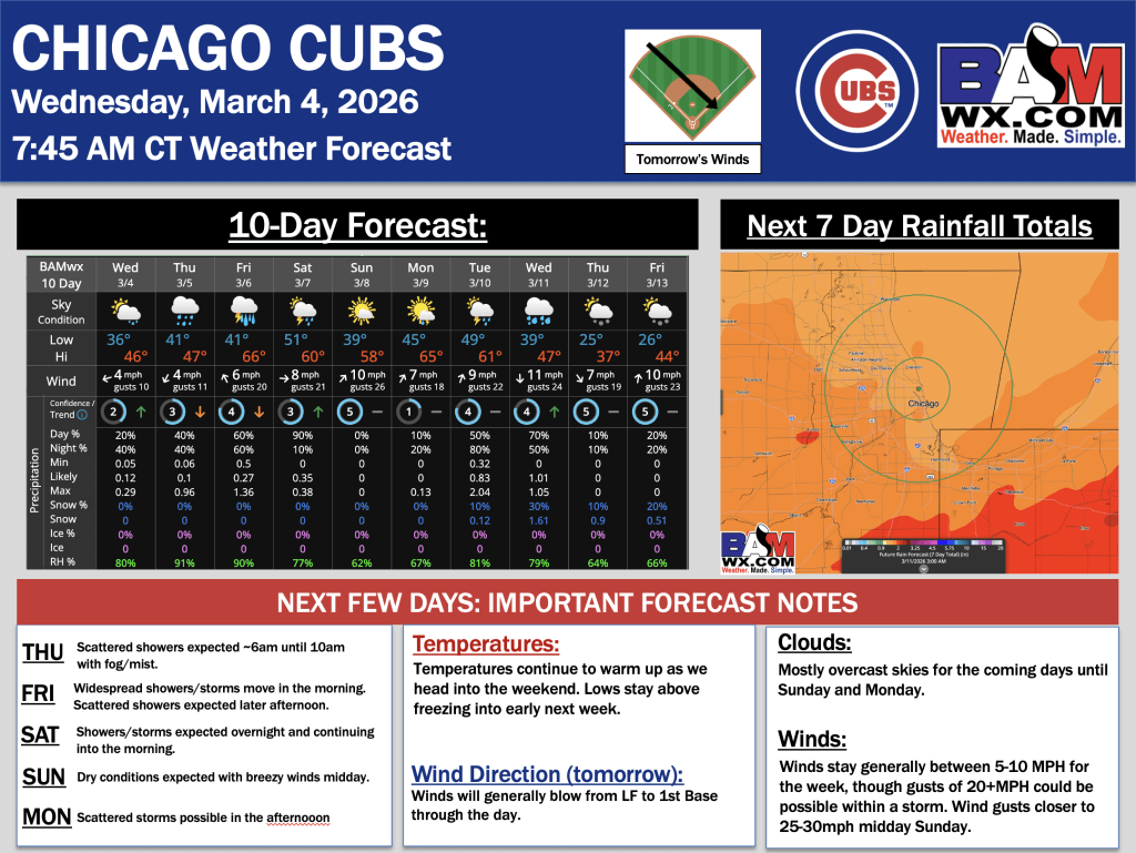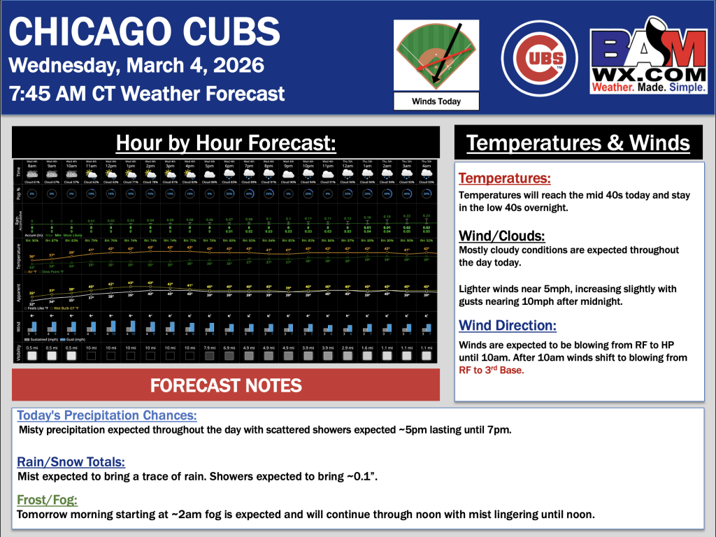 3-4-26 Chicago Cubs.D. By Daniel MurphyOn March 4, 2026 Good morning! Here is your latest Chicago Cubs Forecast Update. PDF: Chicago Cubs