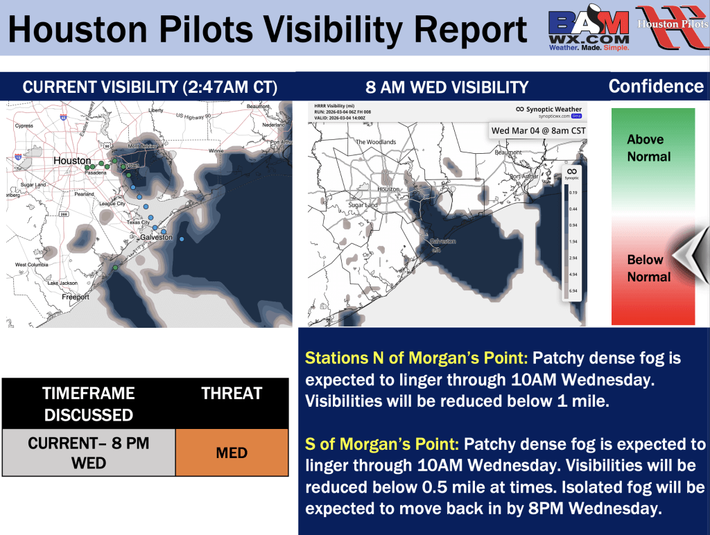 Good Thursday AM! Here is your latest Houston Pilots Forecast Package/Visibility Update! If you have any forecast questions, please do not hesitate to reach out via our on call phone number (317)-560-8122, option 1.
