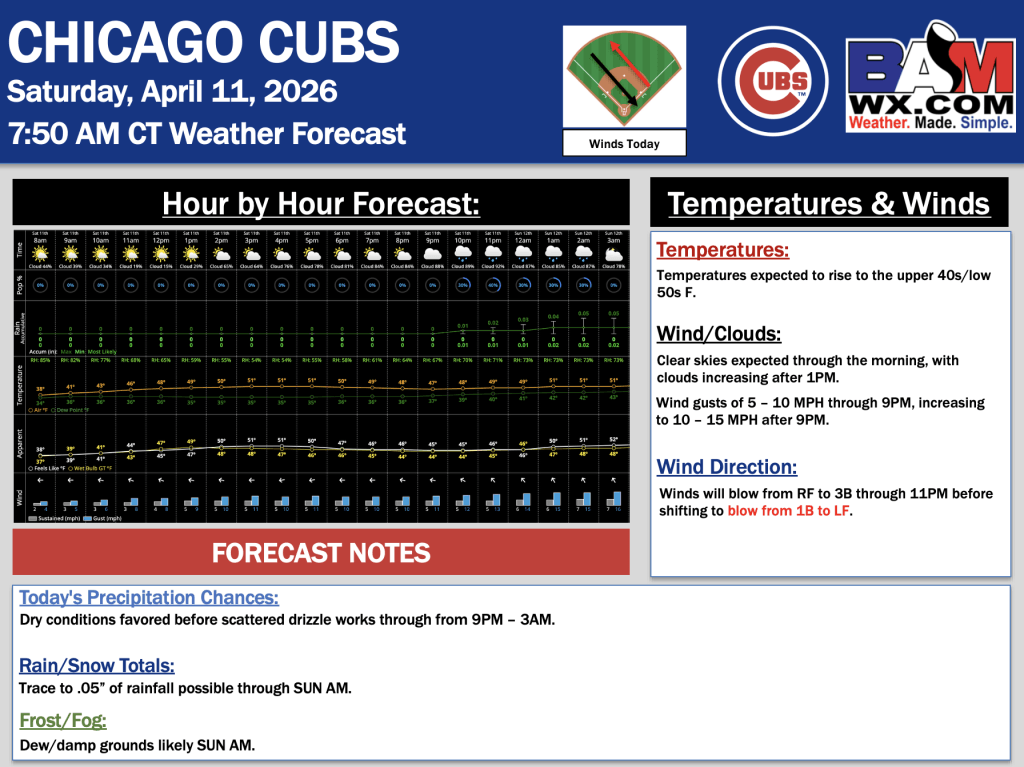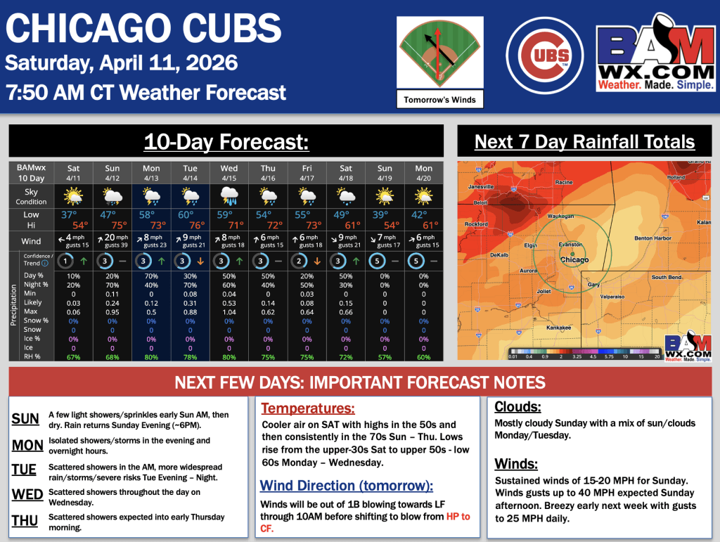 4-11-26 Chicago Cubs Forecast Update.S. By Samantha LangOn April 11, 2026 Good morning! Here is your latest Chicago Cubs forecast Update. Please reach out with any questions! PDF: Chicago Cubs