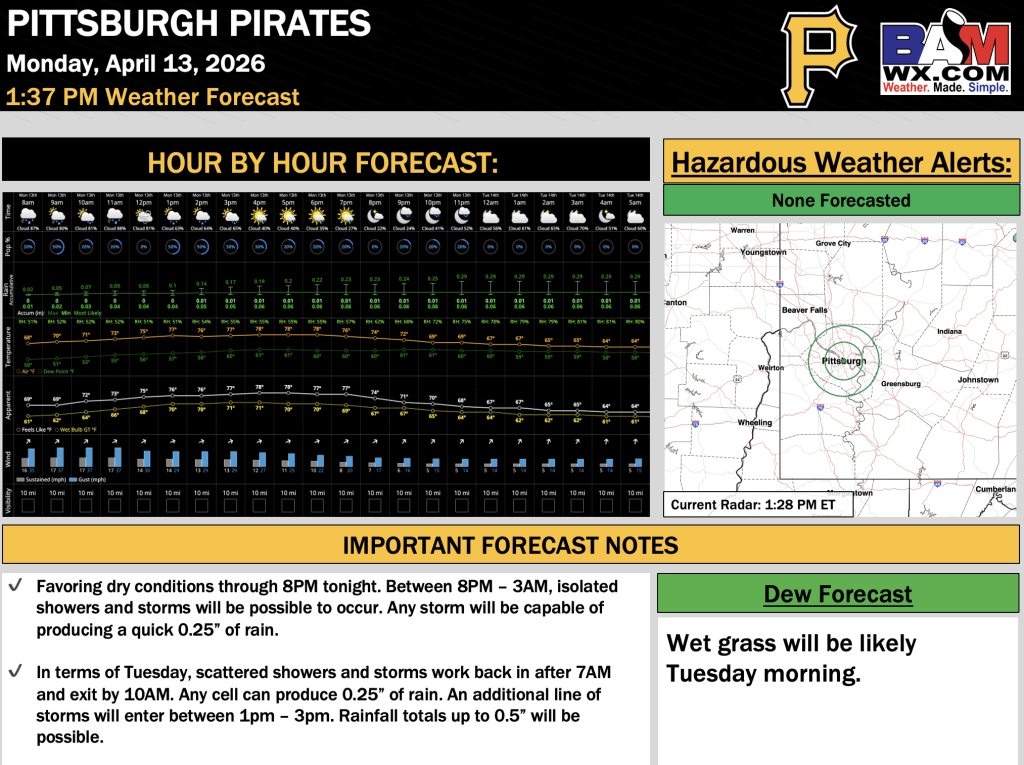 Good Monday afternoon! Here is your latest Pittsburgh Pirates forecast update.