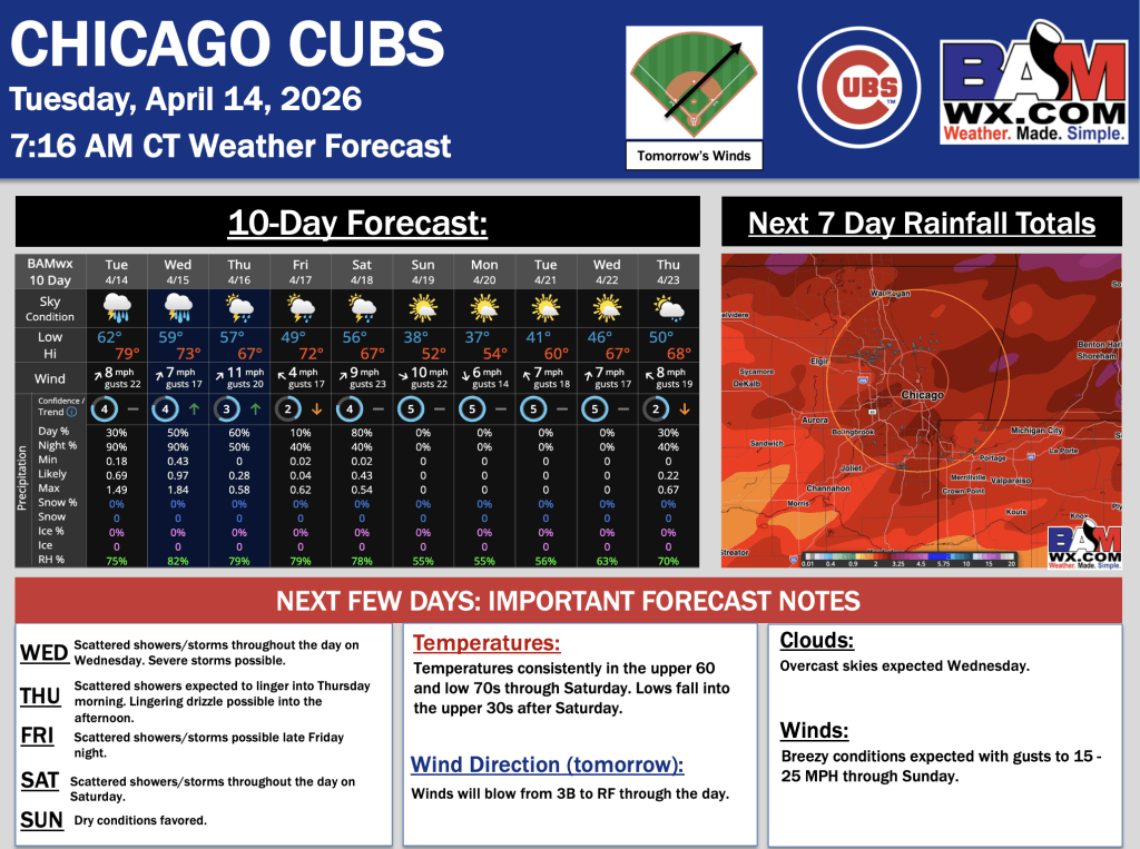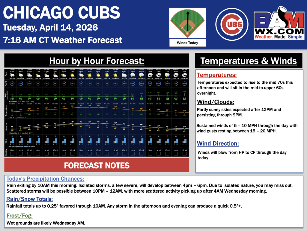 4-14-26 Chicago Cubs Forecast Update.JW. By Jakeb WagnerOn April 14, 2026 Good morning! Here is your latest Chicago Cubs Forecast Update. Please reach out with any questions! PDF: Chicago Cubs
