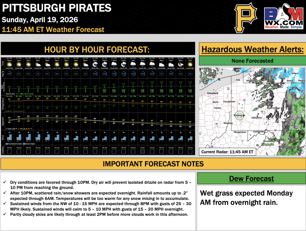 Good Sunday afternoon! Here is your latest Pittsburgh Pirates forecast update.