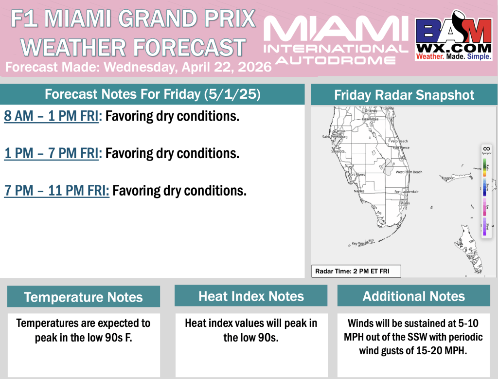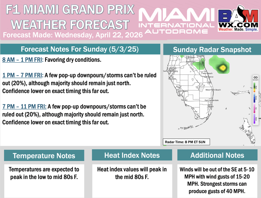 4-22-26 F1 Miami Grand Prix Forecast Update. J. By John KemperOn April 22, 2026April 22, 2026 Good morning! Here is your latest Miami F1 Grand Prix Forecast Update. PDF: Miami F1 Grand Prix