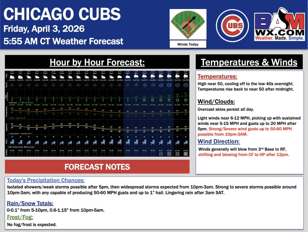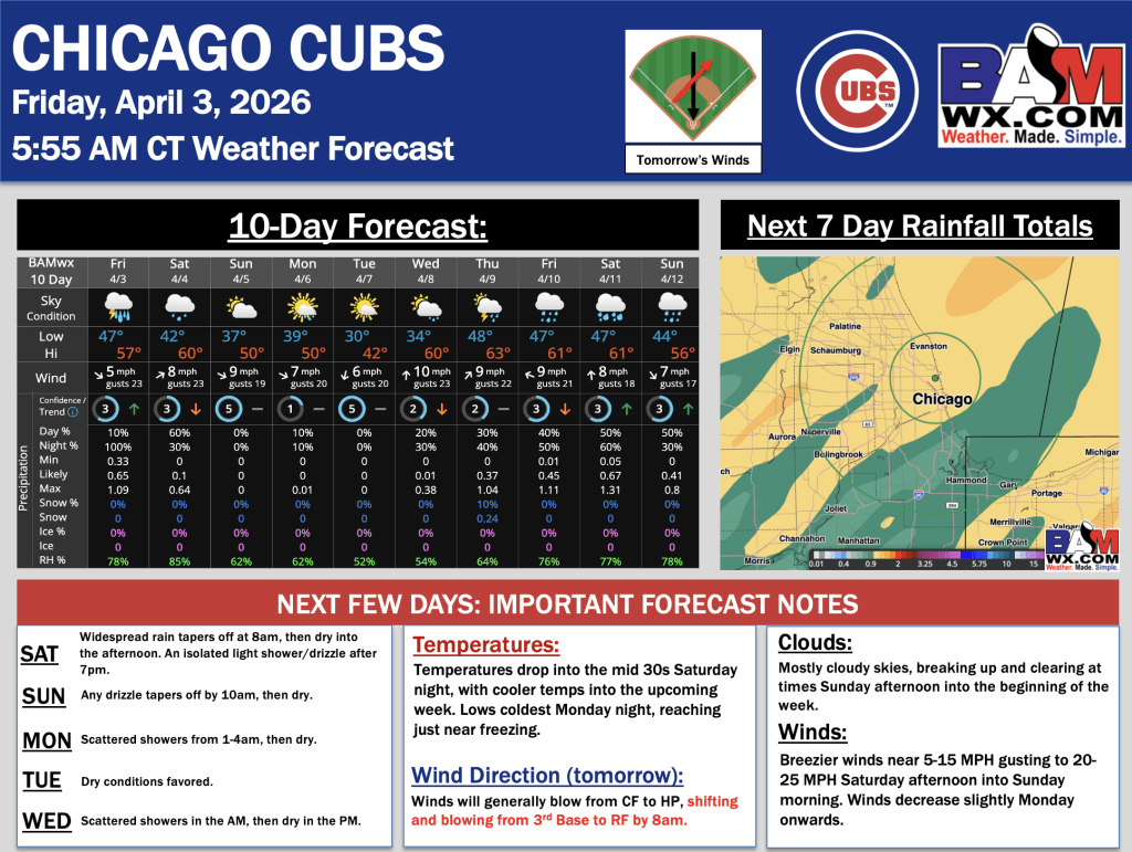 4-3-26 Chicago Cubs Forecast Update. A. By Alexis RatkayOn April 3, 2026 Good morning! Here is your latest Chicago Cubs forecast update. Please reach out with any questions! PDF: Chicago Cubs