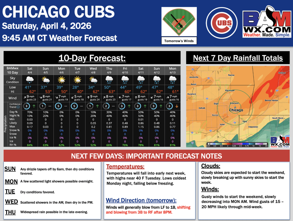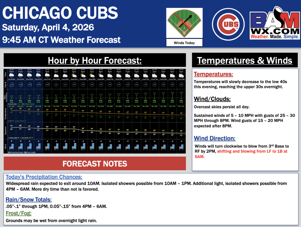 4-4-26 Chicago Cubs Forecast Update. S. By Samantha LangOn April 4, 2026 Good morning! Here is your latest Chicago Cubs forecast update. Please reach out with any questions! PDF: Chicago Cubs