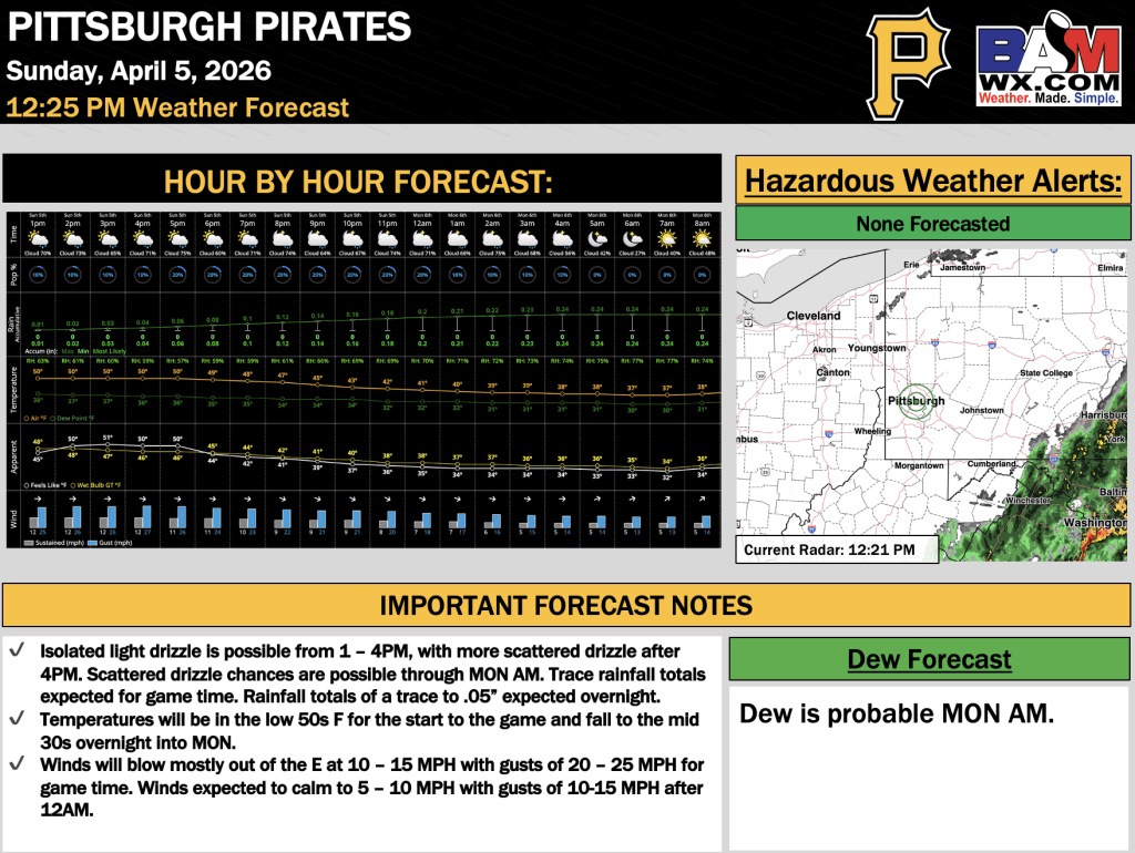 Good Sunday Afternoon! Here is your latest Pittsburgh Pirates forecast update!