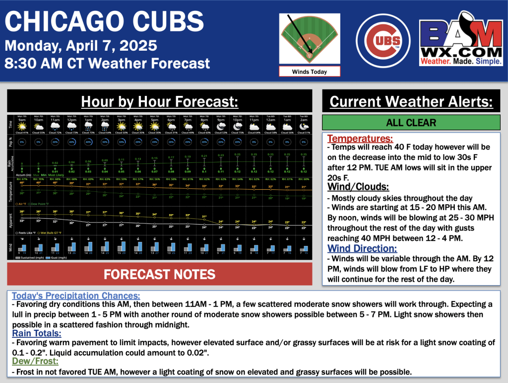 Good Morning! Here is your latest Chicago Cubs forecast update!