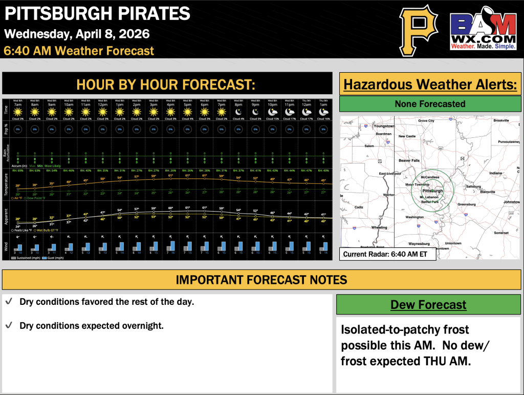 Good WED morning. Here is your latest Pittsburgh Pirates forecast update.