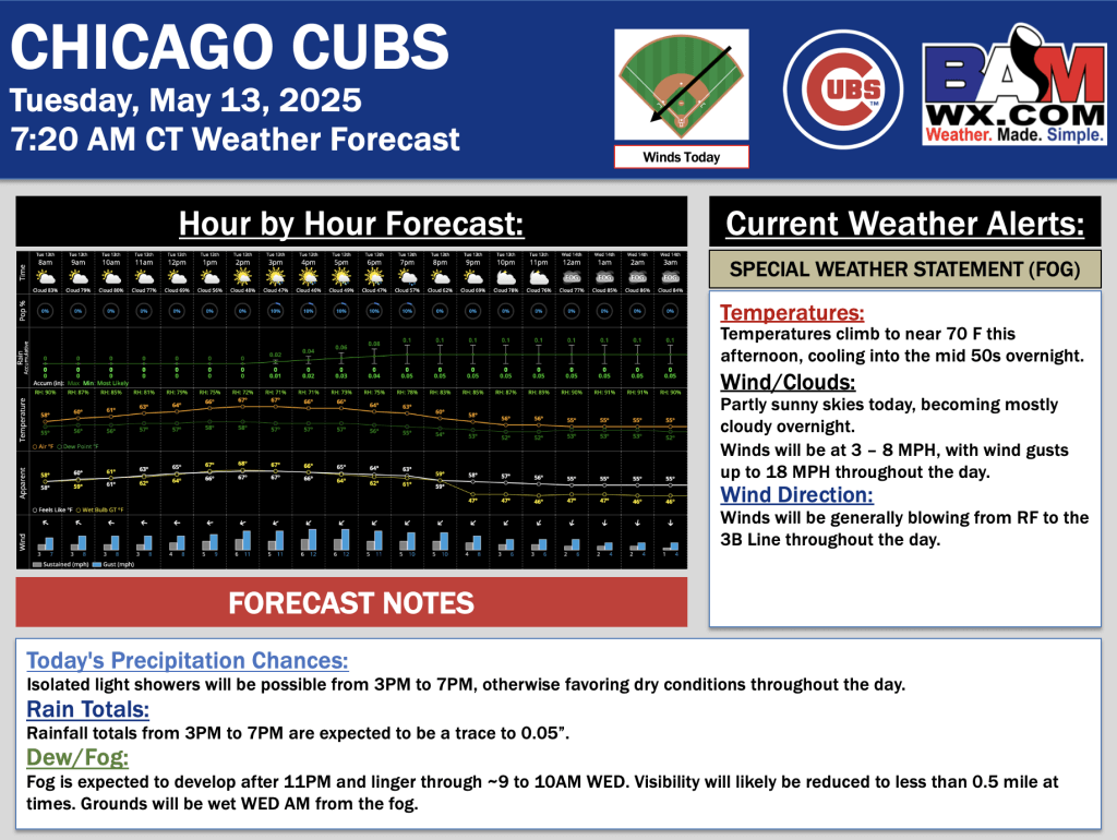 5-13-25 Chicago Cubs Forecast Update.H. By Hope KleitschOn May 13, 2025 Good morning! Here is your latest Chicago Cubs forecast update. Please reach out with any questions! PDF: Chicago_Cubs