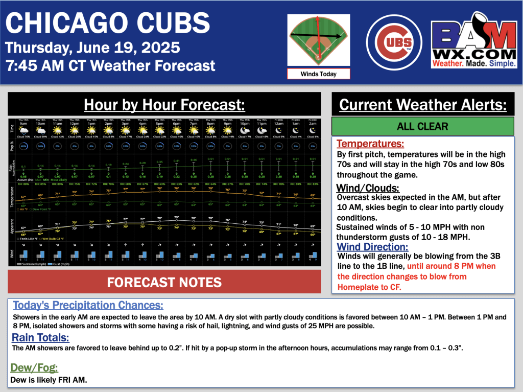 6-19-25 Chicago Cubs Forecast Update.L. By Lydia PurleeOn June 19, 2025 Good morning! Here is your latest Chicago Cubs forecast update. Please reach out with any questions! PDF: Chicago Cubs
