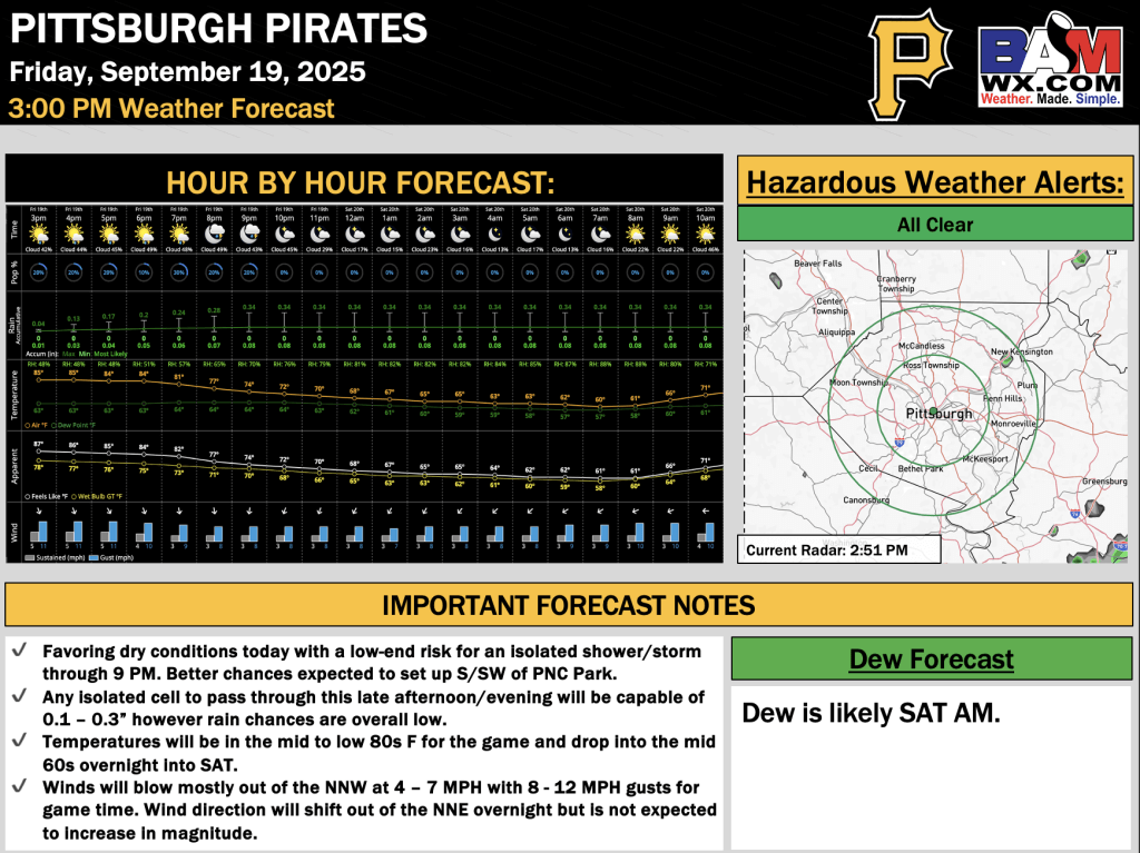 9-19-25 Pittsburgh Pirates PM Forecast Update. T.