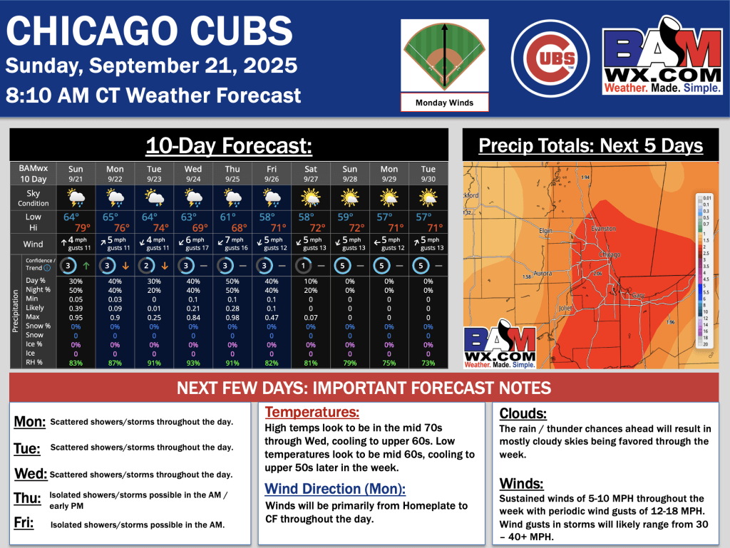 9-21-25 Chicago Cubs Forecast Update.H. By Hope KleitschOn September 21, 2025 Good morning! Here is your latest Chicago Cubs forecast update. Please reach out with any questions! PDF: Chicago Cubs