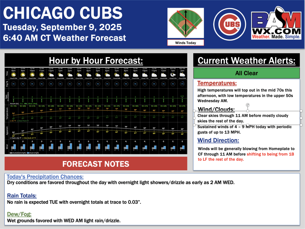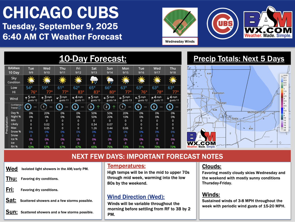 9-9-25 Chicago Cubs Forecast Update.JK. By Jonathan KipperOn September 9, 2025 Good morning! Here is your latest Chicago Cubs forecast update. Please reach out with any questions! PDF: Chicago Cubs